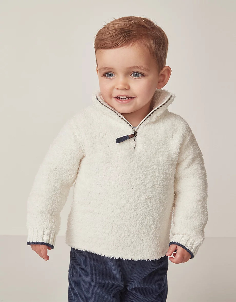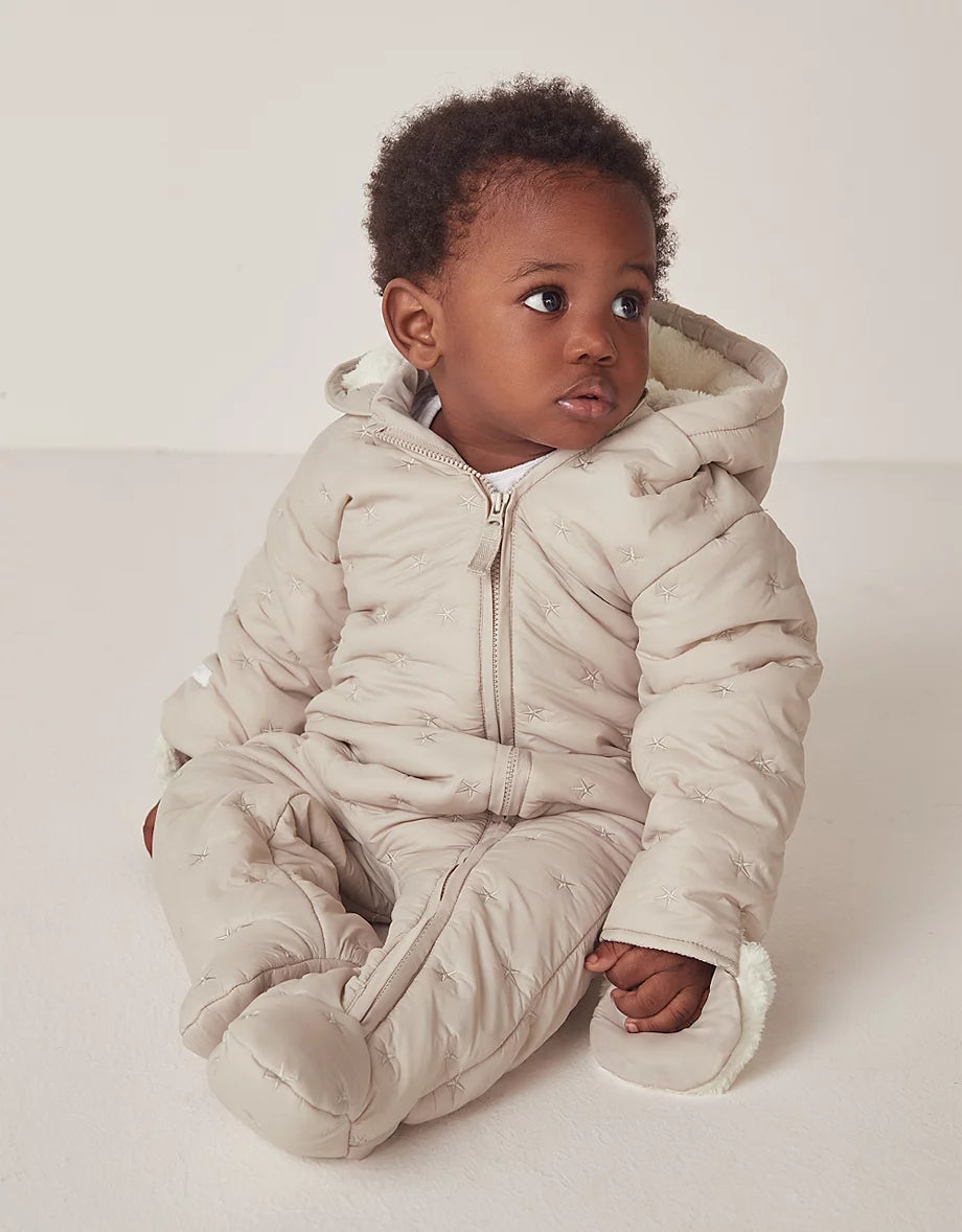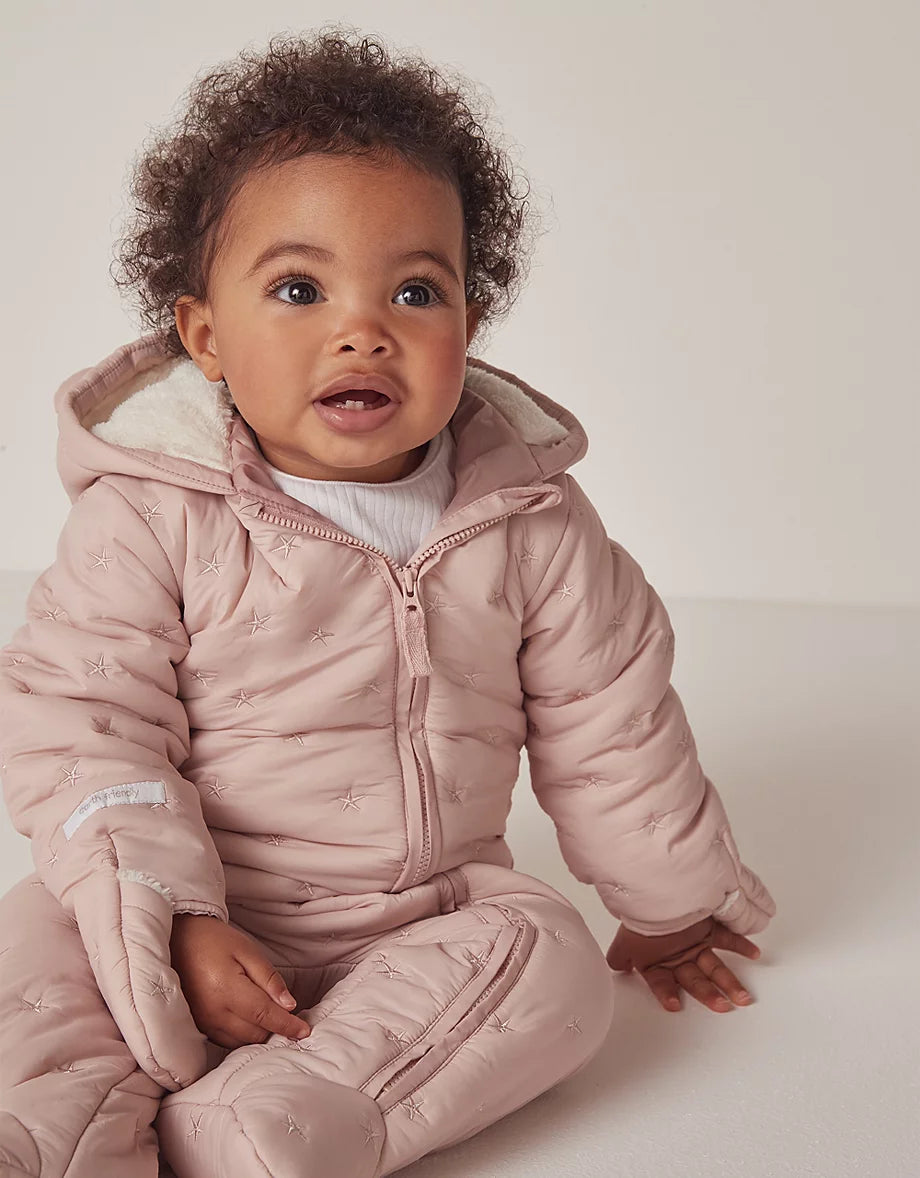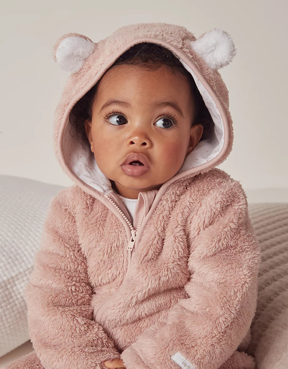 Frosty morning walks or weekend outings – our baby outerwear and knitwear has them covered, no matter the plans. From fleecy borg jackets and patterned jumpers to zip-up gilets, each piece is perfect for layering through the seasons. Soft rompers, cosy cardigans and practical outerwear are designed to move with little ones, keeping them comfortable, warm and ready for every adventure – big or small.